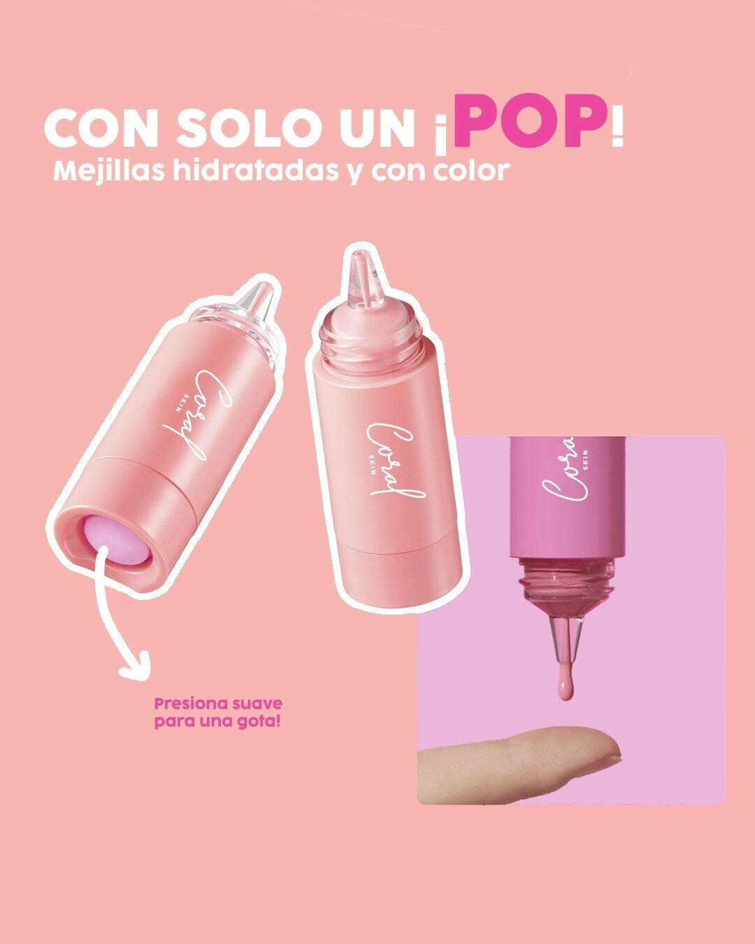 Nuestro CORAL LIQUID BLUSH con solo una gota tu piel se mantiene suave por fuera e hidratada por dentro. un rubor para tus mejillas enriquecido con vitamina E te da hasta 12 horas de color, mezcla, combina y personaliza, son rubores faciles de mezclar para que explores con tu maquillaje a la vez que cuidas tu piel.